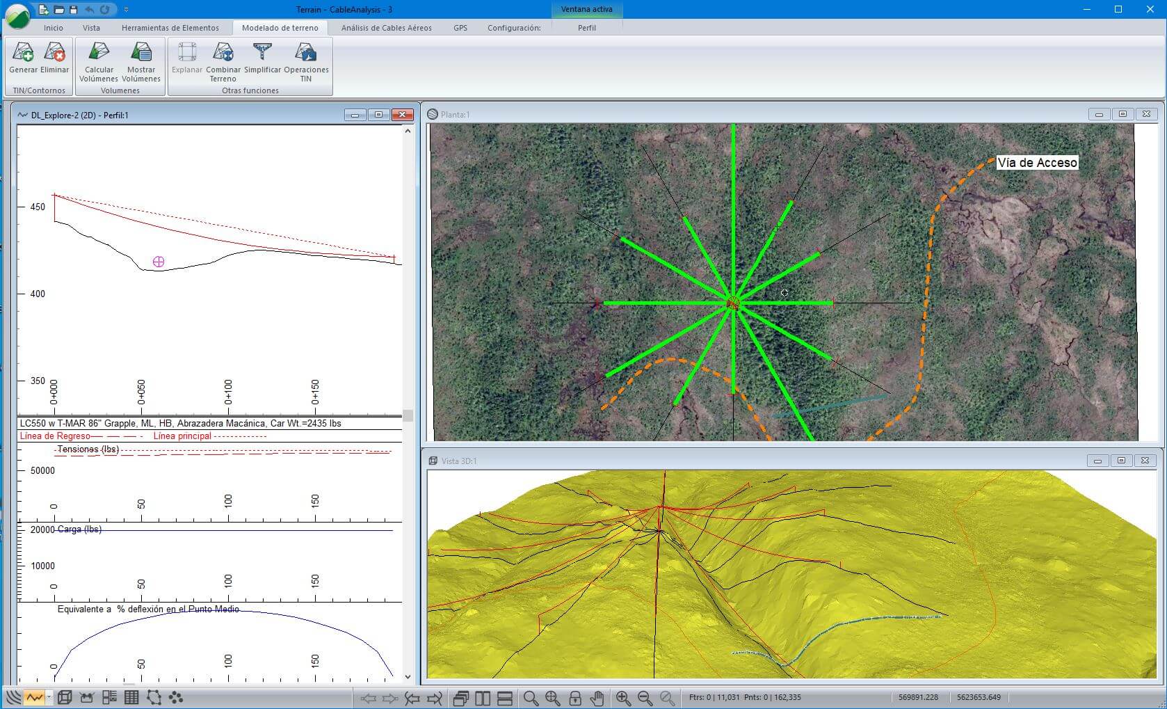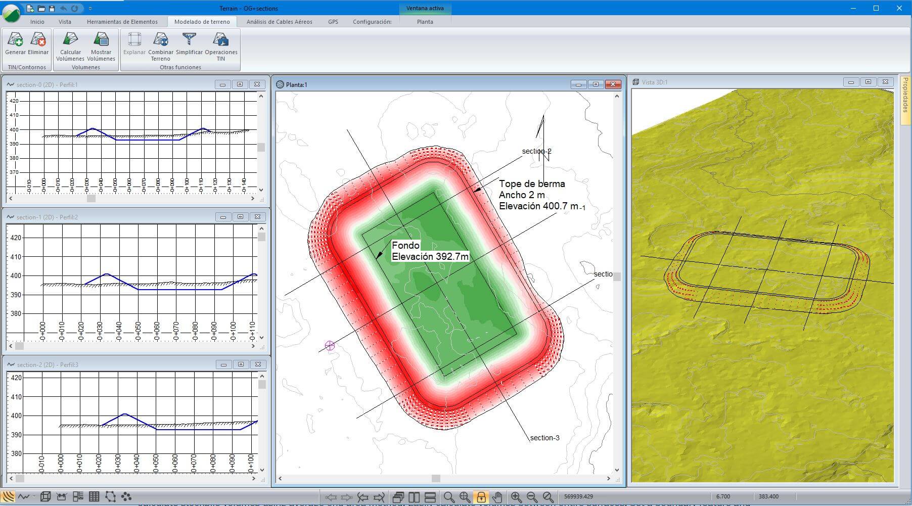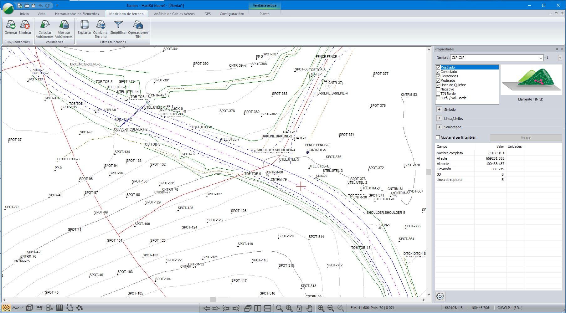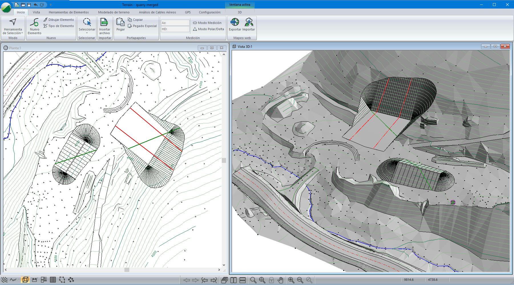 Ideal para diseños tridimensionales de sitio, cálculo de volúmenes de pilas, levantamientos de minas, diseño de explanaciones y pozas, generación de superficies a partir de curvas de nivel y diseño de vertederos.