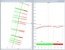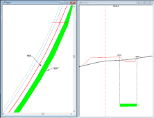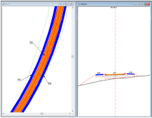 This option allows you to specify an origional ground surface (topo) and a final ground surface (SG). The colors on the cross section show the limits of cut and fill.