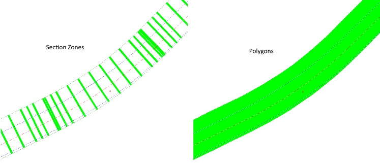 Section Zones are descrete zones centered about each section (reporting point). Continuous zones are connected between each section (reporting point).