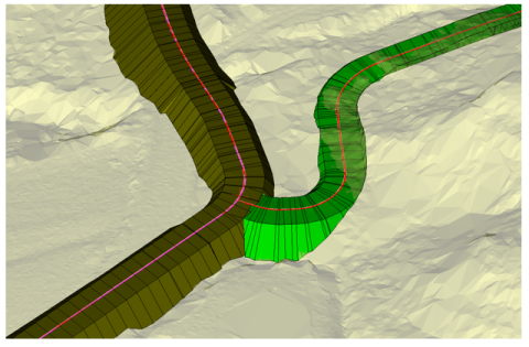Figure: Multiple Corridor Surfaces from Different Horizontal Alignments