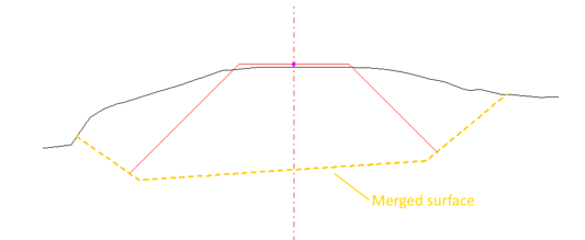 In the example below the merged surface trench (yellow) has been created by another corridor operation.